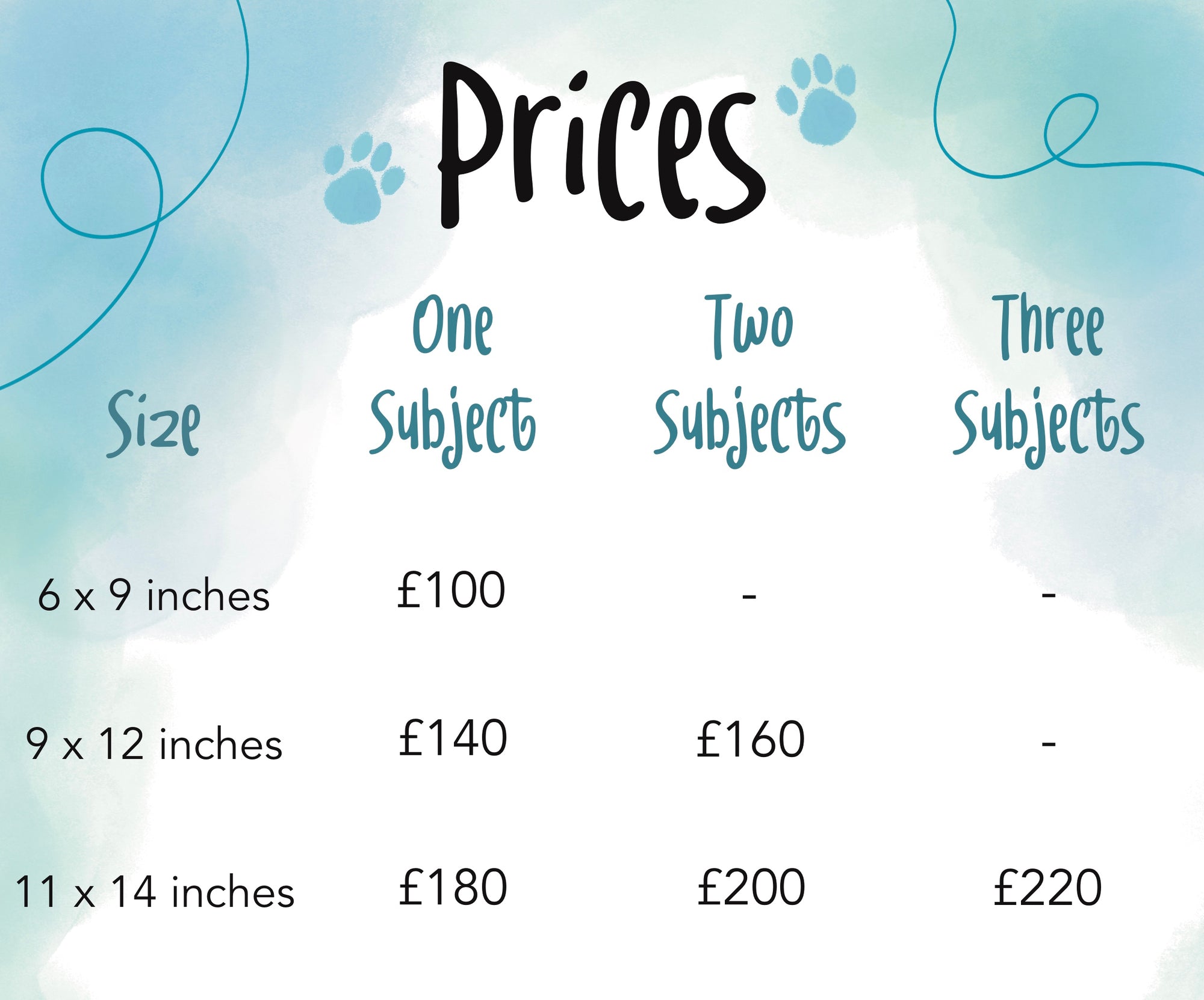 Get in touch to discuss your bespoke pet portrait! Please include the sizing, number of pets and timing requirements if making a booking. If you have any questions, you can use this form too.