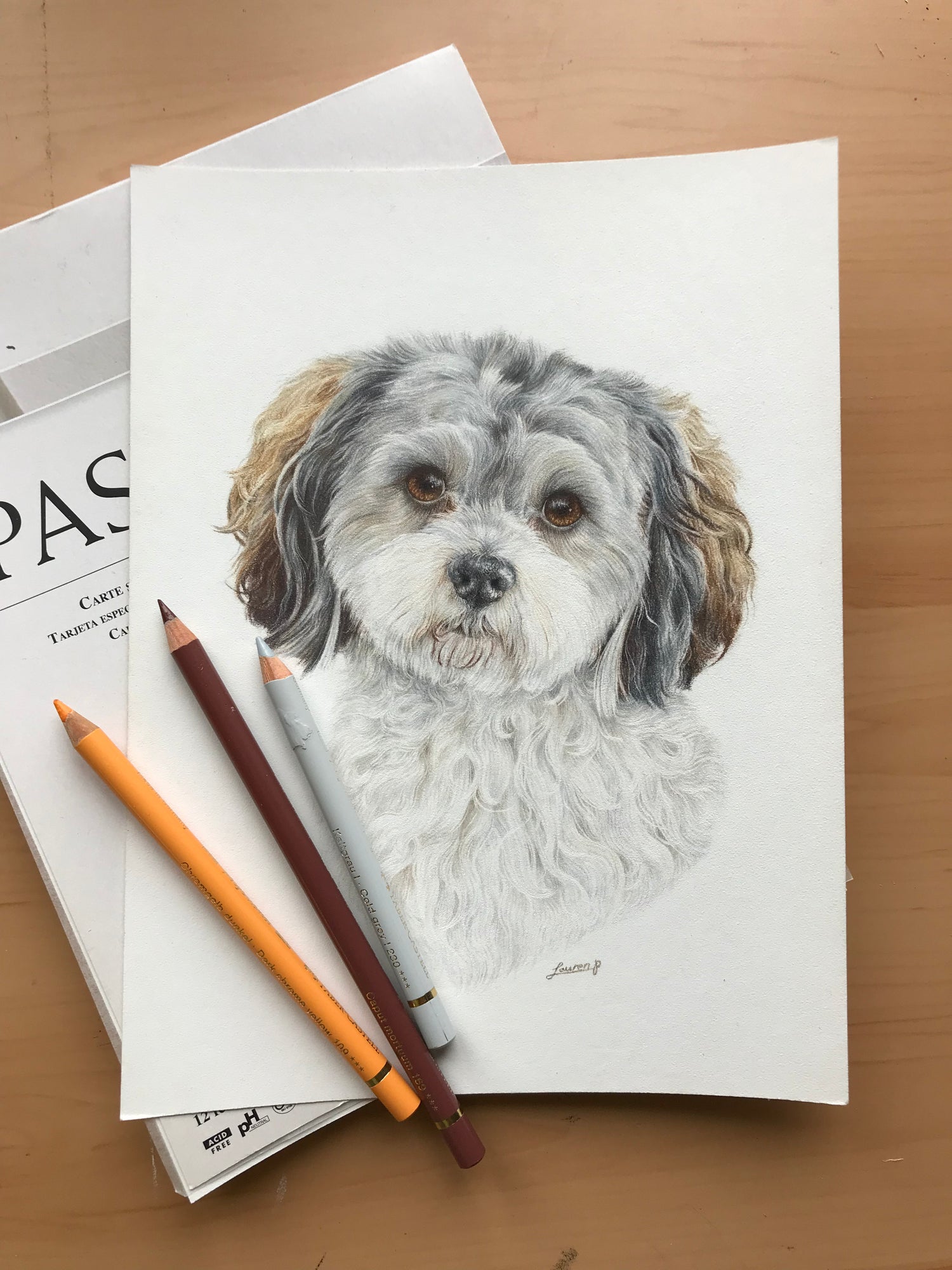 "I can't thank Lauren enough for the portrait of my little man, her work is absolutely outstanding. The attention to detail is incredible bringing the drawing to life, so much so my little dog throught there was another dog in his sitting room - his reaction was priceless."