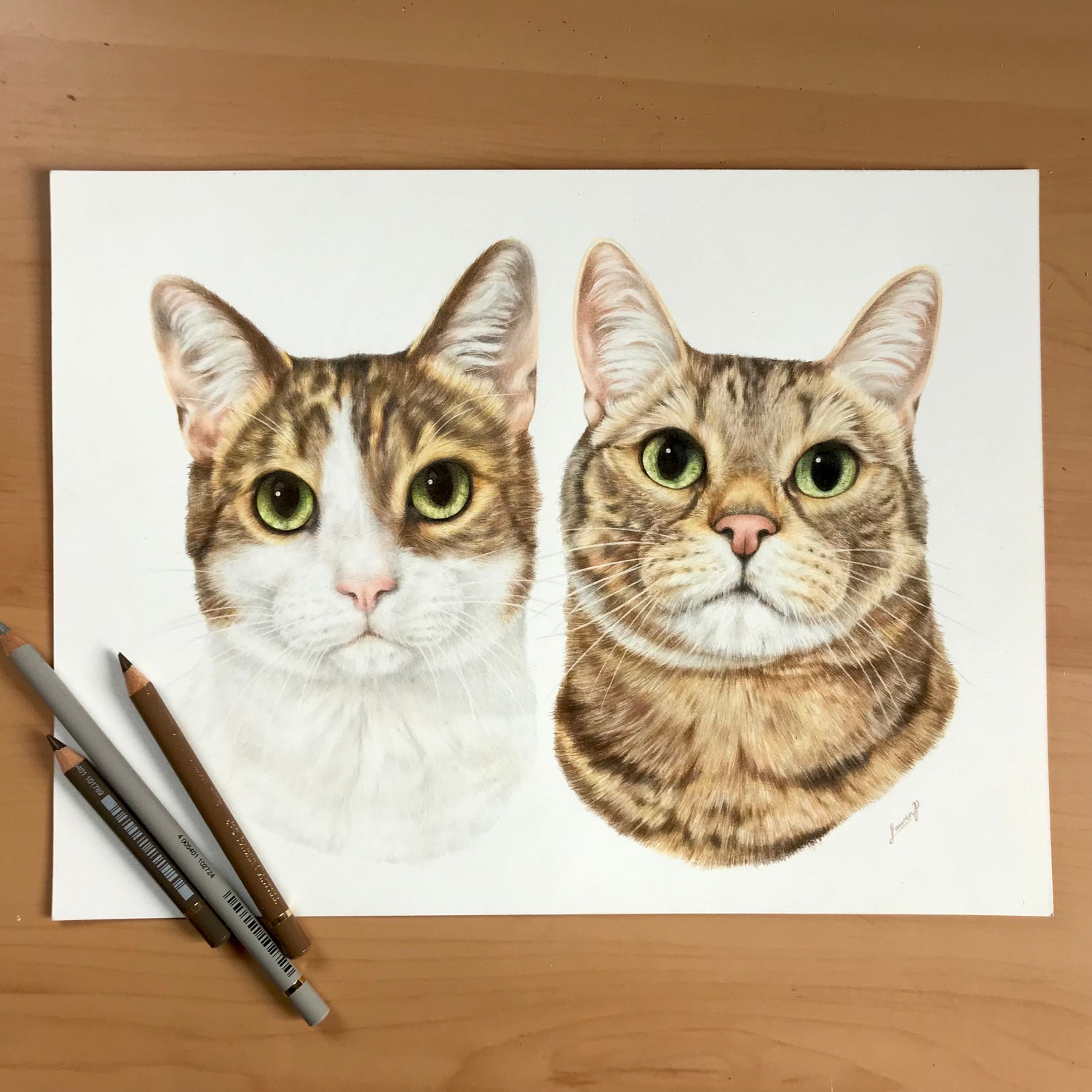 "Lauren has done two portraits for me and they are absolutely stunning. It is amazing the likeness is to both the dogs. It's like then looking in the mirror! I am so pleased with them. She completed them quicker than expected and they arrived beautifully packaged. The colours and detail is expertly matched right down to the very whiskers.